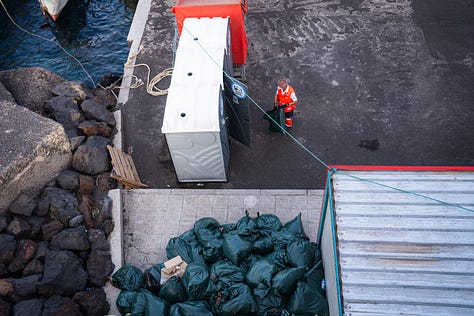 This story begins and ends at the port. Different ports offered varying degrees of ease of access - the ports of Gran Canaria such as Arguineguin were almost entirely fenced off, which makes sense given the history of the migrant camp set up there in 2020 before funding arrived for facilities that could accommodate all the migrants. The ports of Tenerife were mostly open to visitors, but security was still present to fend of curious photographers. On El Hierro, there were no barriers and anyone can walk straight up to the point where migrants disembark, as long as you weren’t chased off by the Guardia Civil.