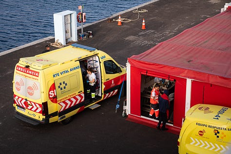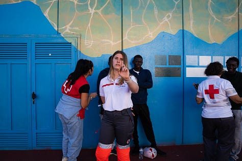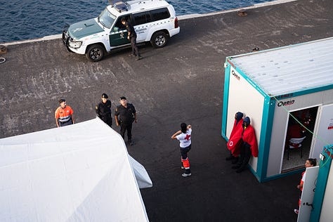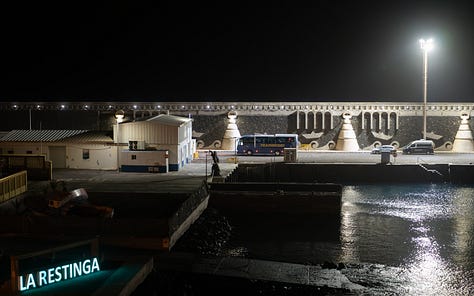 At the same time the migrant crisis is unfolding across the archipelago, the islands remain a top tourist destination for Europeans, especially those from the UK. In 2022, 12.3 million tourists visited the Canary Islands, and El Hierro in particular is famous as one of the world’s top scuba diving spots. This complex reality of decadent capitalist consumption mixed with its position as a key illegal entry point into Europe from Africa makes it an incredibly interesting case study as a new crossroads. Hordes of wealthy travelers coming in by plane at the same time that migrants from Senegal and Mauritania arrive after enduring an arduous weeks long journey across open ocean, with limited resources and extremely high risk of dehydration and their vessels capsizing paints a picture of the 21st century as a surreal postmodern dystopia.